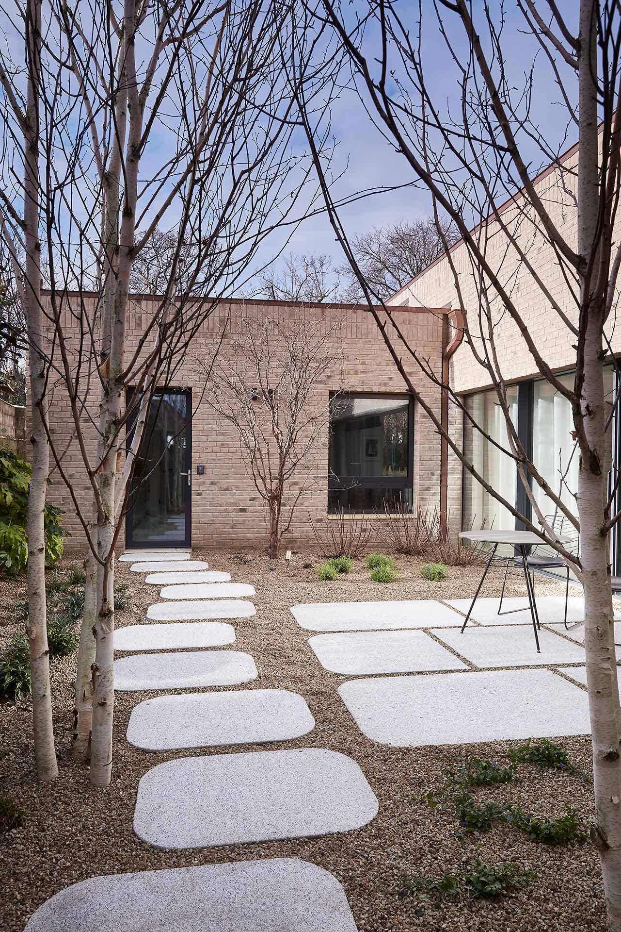 The plan of the house is designed to benefit from light all day through the use of courtyards and clerestory lighting. The rooms on the ground floor are open plan but can be closed off by sliding doors.